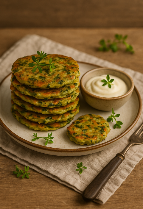 Knapperige goudbruine rösti met fris-zure zuring en lente-ui. Een hartig gerecht met een sprankelende groene toets.